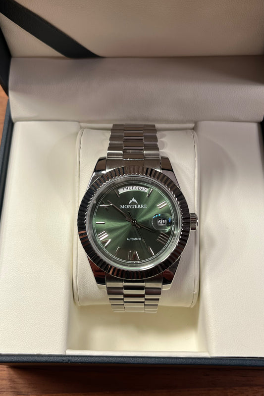 Basierend auf dem Miyota 8285 Automatikwerk, präsentieren wir die MONTERRE DATE N' DAY. Eine hochwertige Uhr mit dem Durchmesser 40 mm, die die perfekte Verbindung zwischen Sportlichkeit und Eleganz darstellt. Auch in vielen weiteren Varianten erhältlich! Kontaktiere uns gerne für individuelle Wünsche.