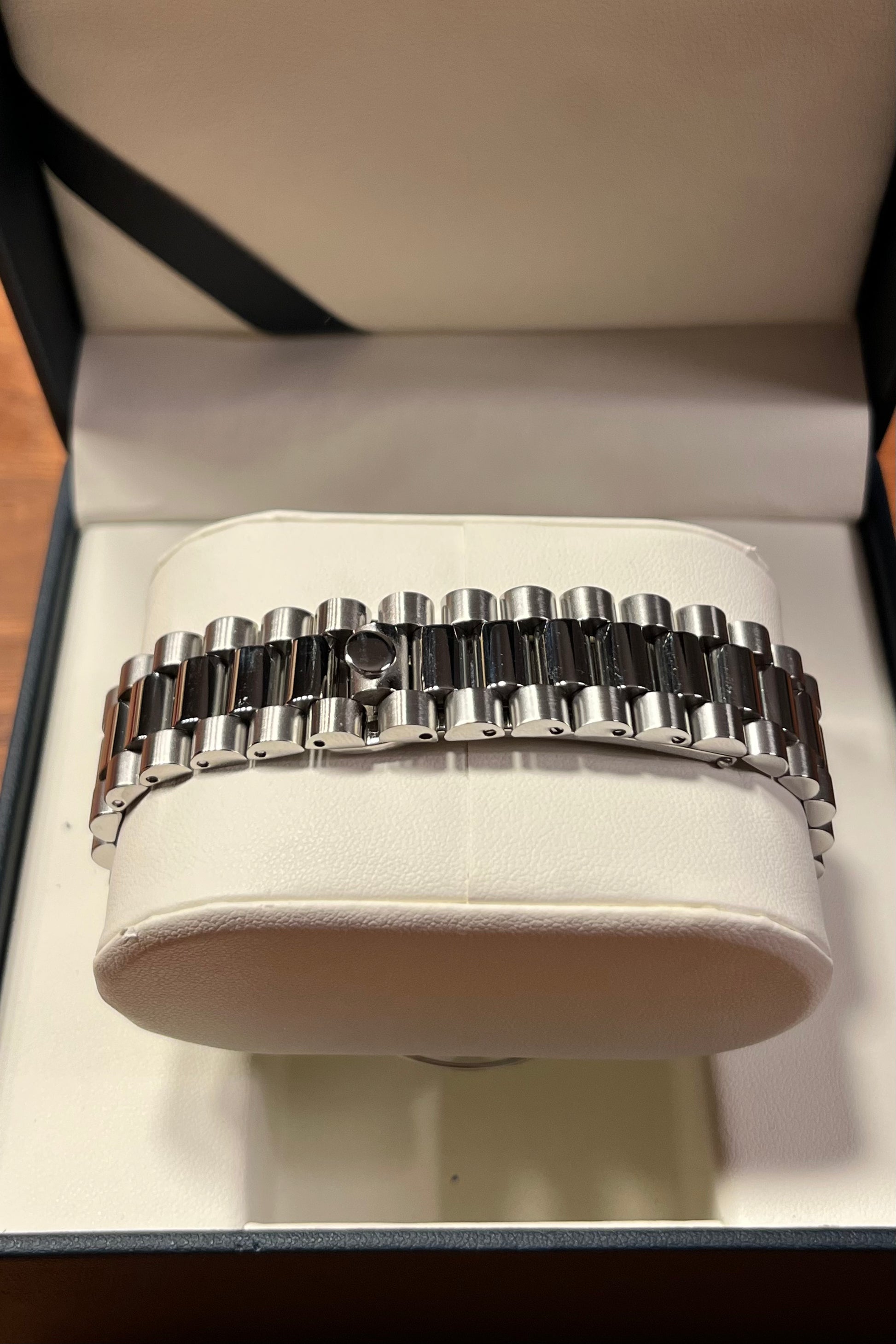 - Gehäuseboden: Glas (sichtbares Werk)
